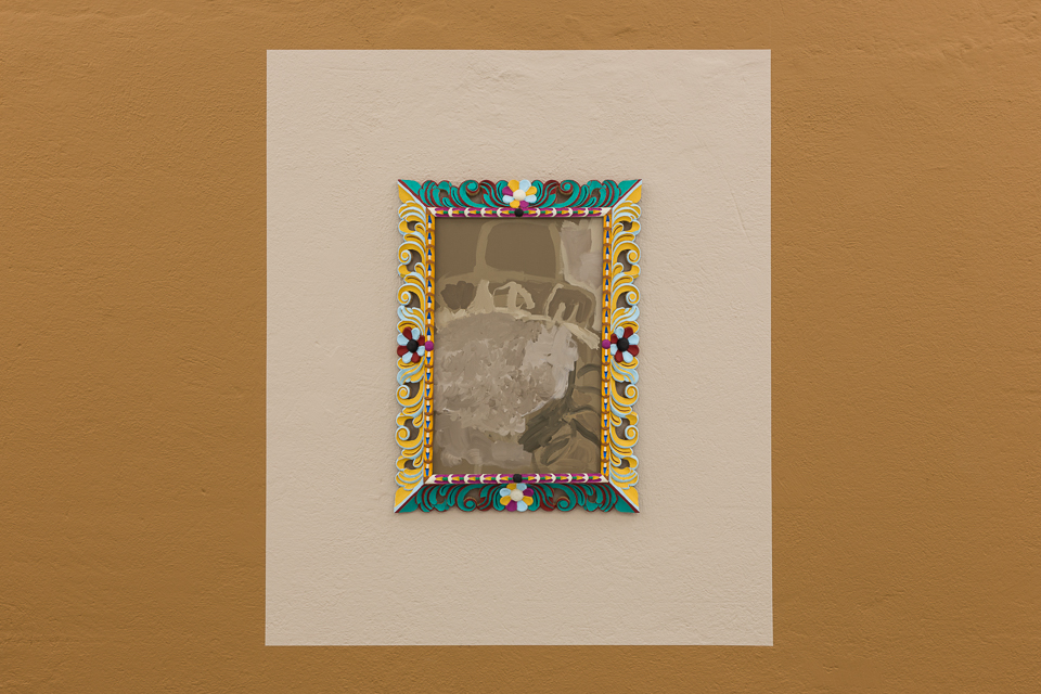 Tente en el aire (Hold yourself in midair) is a direct reference to the Casta paintings—it is the name of an invented racial classification denoting the descendant of a Campulato and a Cambujo. This designation, referring to someone literally floating between identities, incapable of claiming their roots, reflects the chastising nature of these definitions. While the frames are painted in bright, vibrant colors, the paintings they contain—and the walls they were installed on—reflect Calero's extensive color research into the shades and tones of brown, a color range which became much more prevalent in her practice in the aftermath of this project. This new palette was in itself an exploration of pigment as an example of classificatory narratives that define hierarchies, voices and positionalities. Here the subject appears in an abstraction of the portrait genre that shifts the notion of personal representation towards the narrative of collective identities and the layered nature of their constructs.
